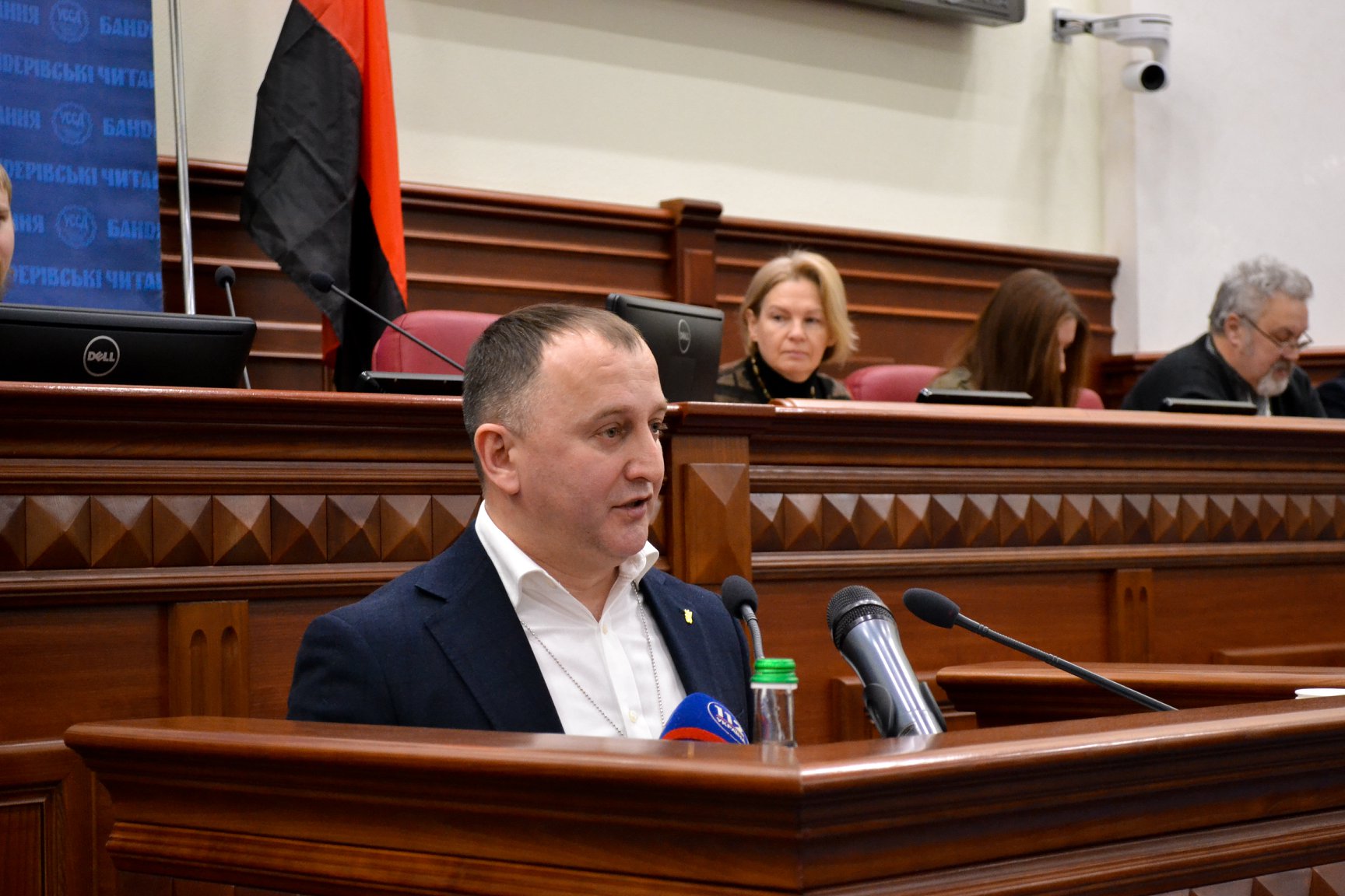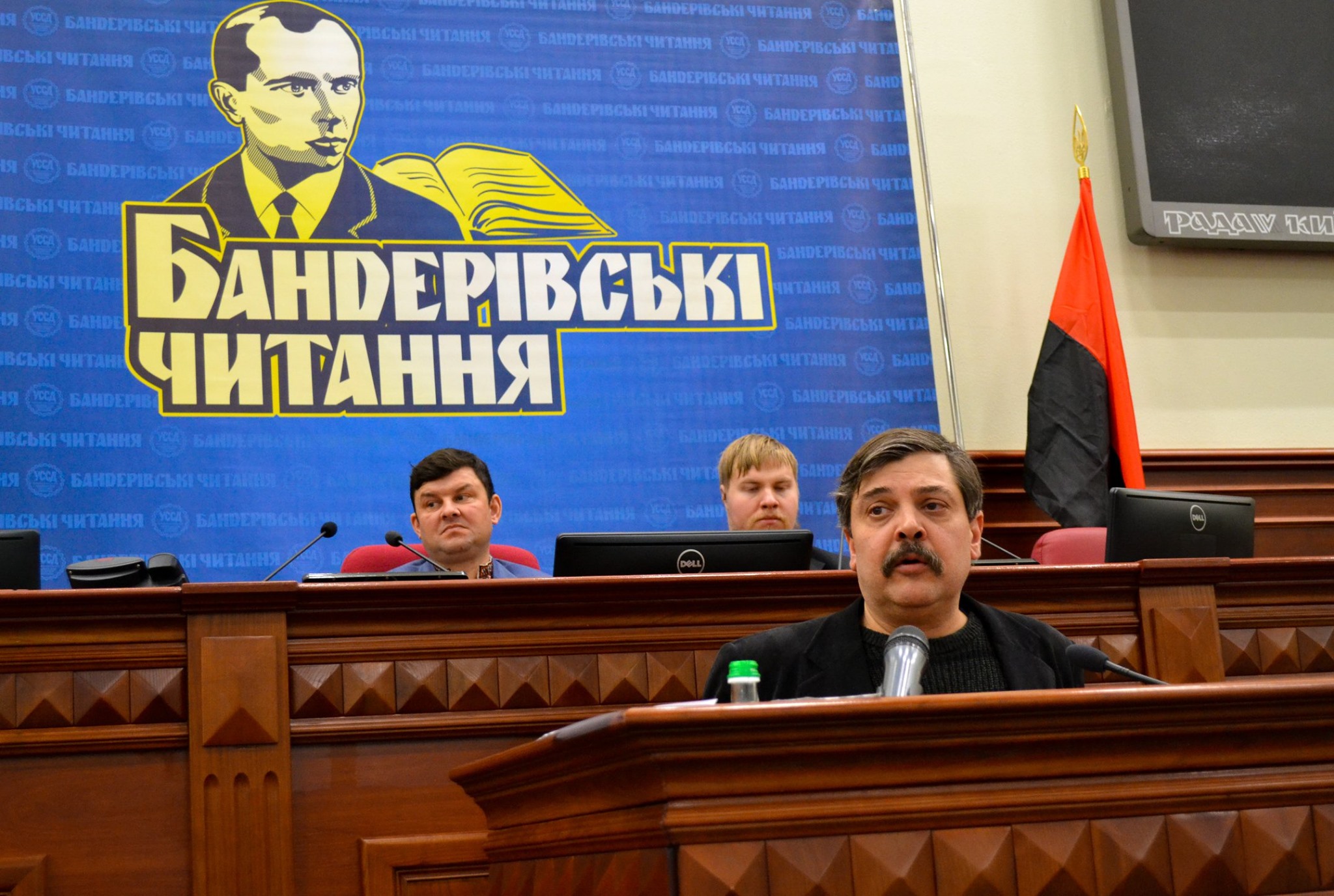 Відкривають Бандерівські читання виконанням національного славня та молитвою. По тому – вітальні слова від очільників політичних націоналістичних організацій. З вітальним словом до присутніх, окрім внука Степана Бандери, звертаються Андрій Тарасенко та Олег Тягнибок – лідери “Правого сектора” та ВО “Свобода” відповідно. Привітав учасників і головний редактор бандерівського часопису “Шлях перемоги” Віктор Рог.