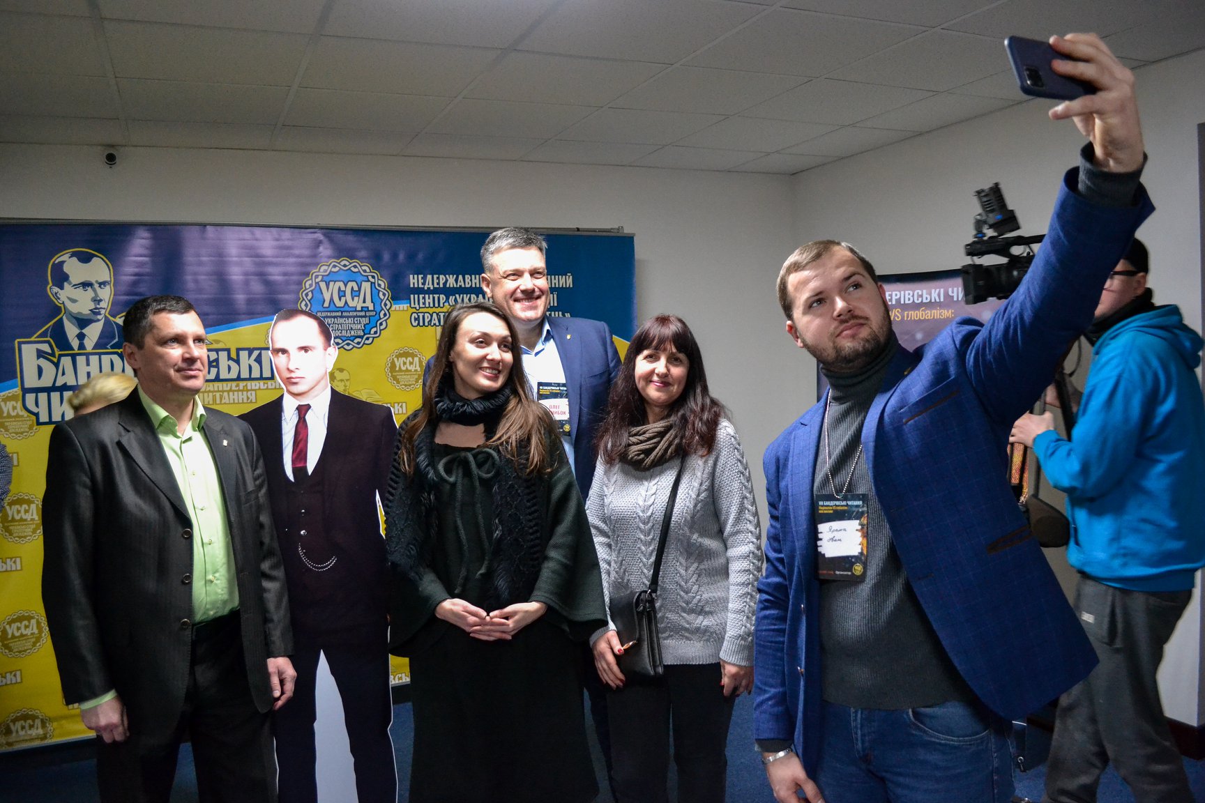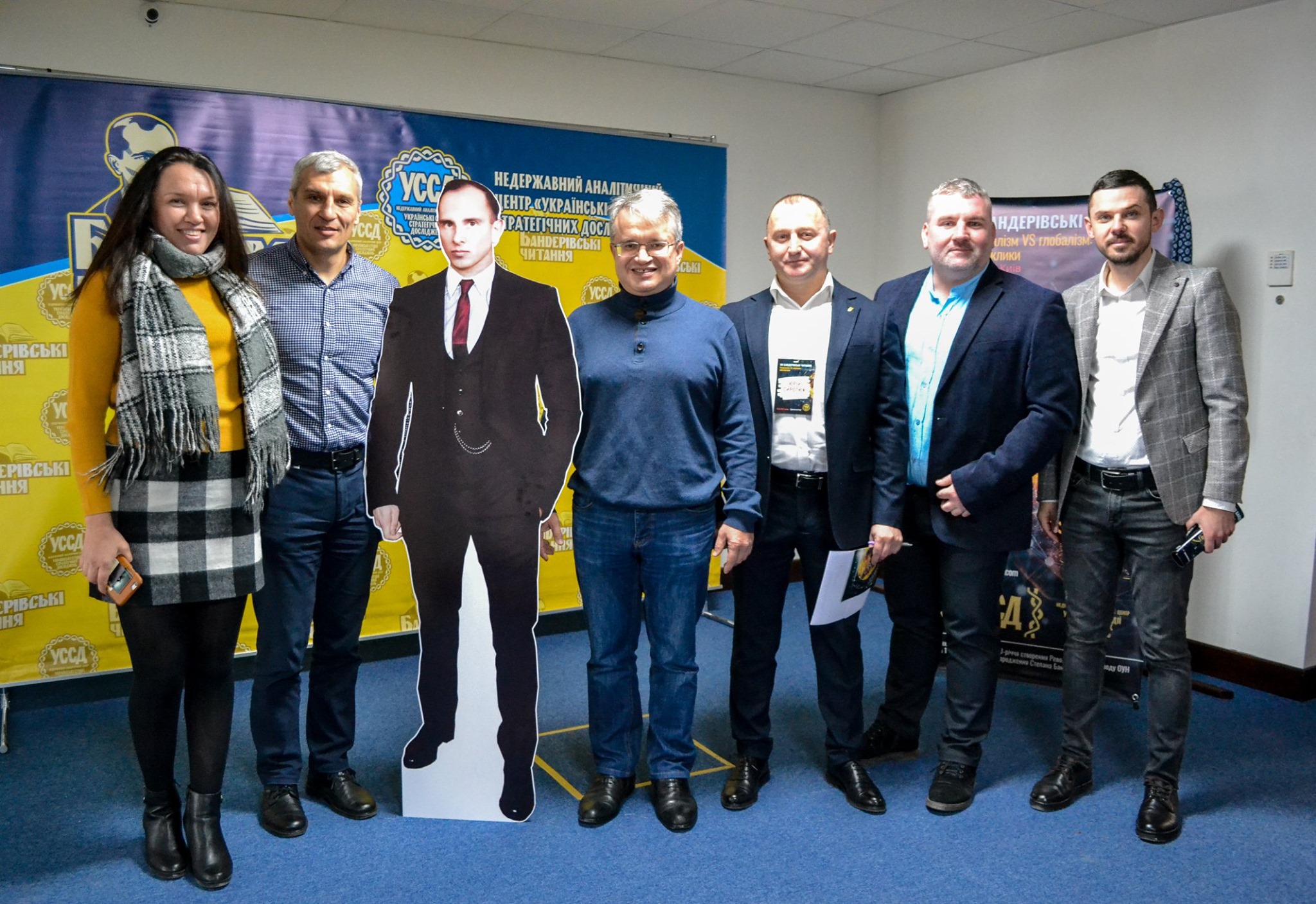 Біля входу до зали, де відбувається захід, стоїть Степан Бандера – ростова фігура Провідника Організації Українських Націоналістів. Відвідувачі раз-по-раз роблять світлини разом з Бандерою. Невдовзі після відкриття поряд з фігурою з’являється і живий Степан Бандера – внук-тезка провідника.