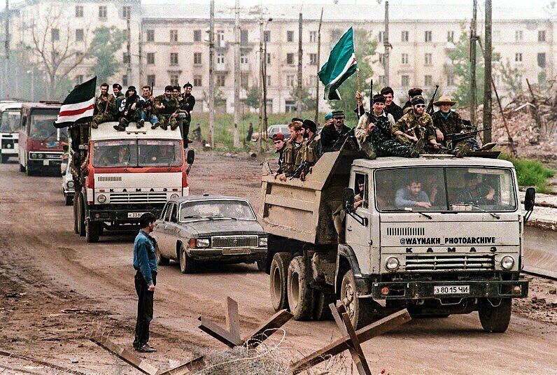 Фото з відкритих джерел: Вхід озброєних сил Ічкерії в Грозний в серпні 1996 року.