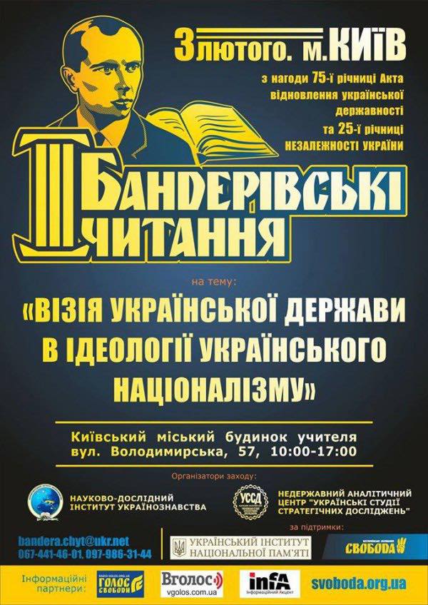 3 лютого 2016 року в Київському міському будинку вчителя відбулися ІII Бандерівські читання, приурочені 75-й річниці Акта відновлення української державності та 25-й річниці Незалежності України на тему: «Візія Української держави в ідеології українського націоналізму».