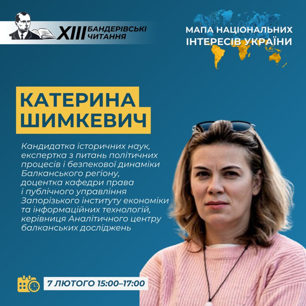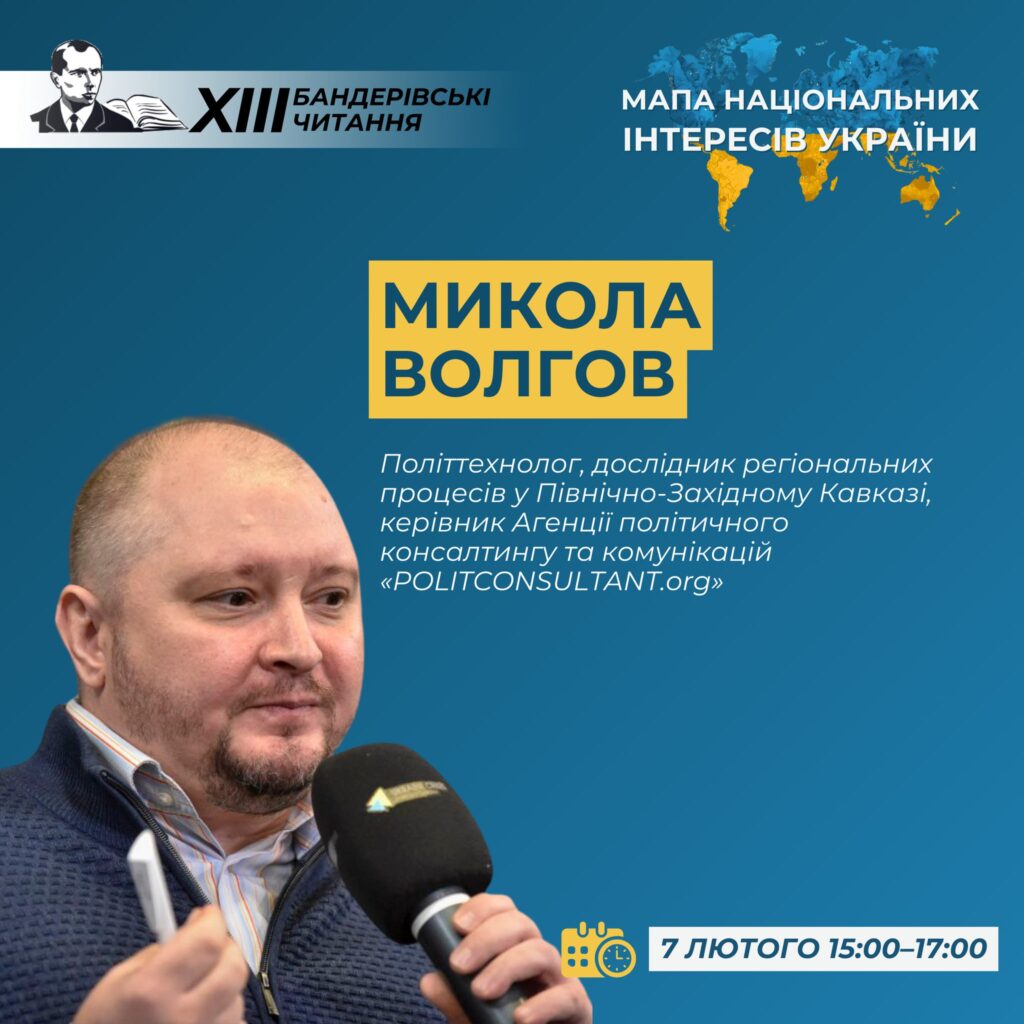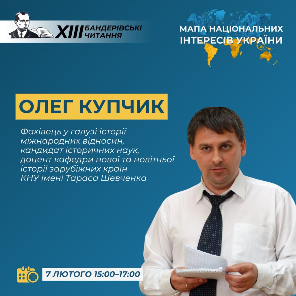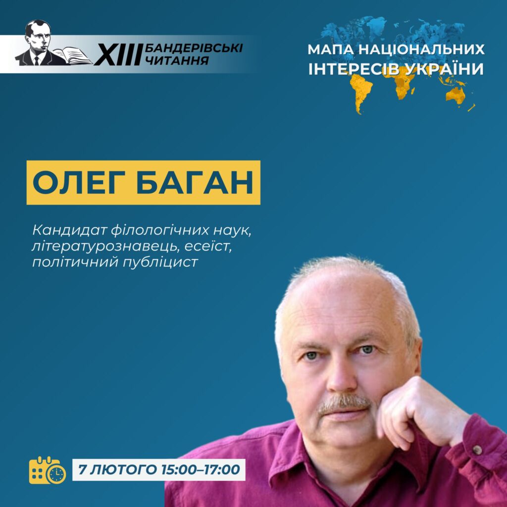 Нагадуємо, що 7–8 лютого відбудуться ХІІІ Бандерівські читання на тему «Мапа національних інтересів України». Це простір фахової розмови, де в режимі відкритої експертної дискусії буде чітко й аргументовано окреслено національні інтереси та зовнішньополітичні пріоритети України.