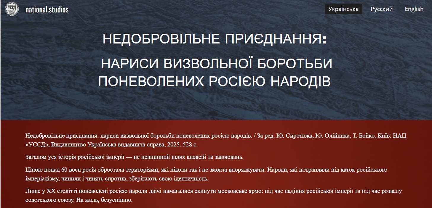 Перше в Україні комплексне видання, яке знайомить з багатосторічною історією визвольної боротьби поневолених росією народів, жоден з яких добровільно не хотів ставати частиною імперії та використовував найменший шанс для спроби здобути незалежність і волю від свого поневолювача і колонізатора.
